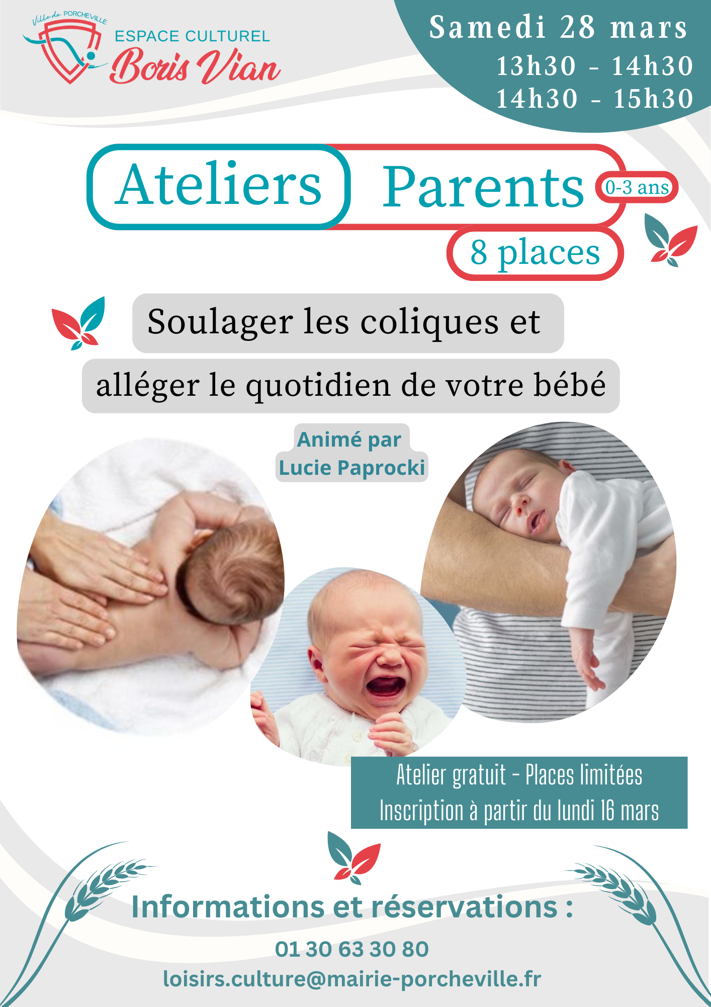 Date : Samedi 28 mars de 13h30 à 14h30 ou de 14h30 à 15h30