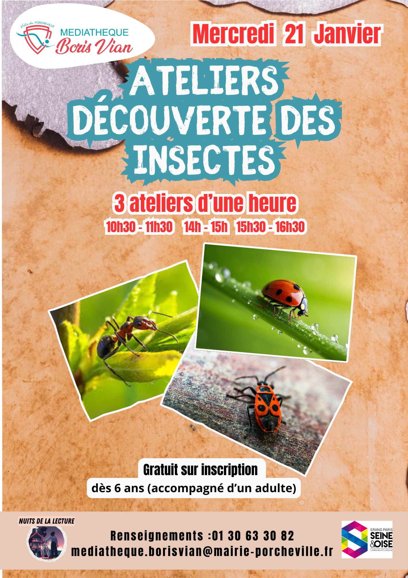 Renseignements : 01 30 63 30 82 / mediatheque.borisvian@mairie-porcheville.fr