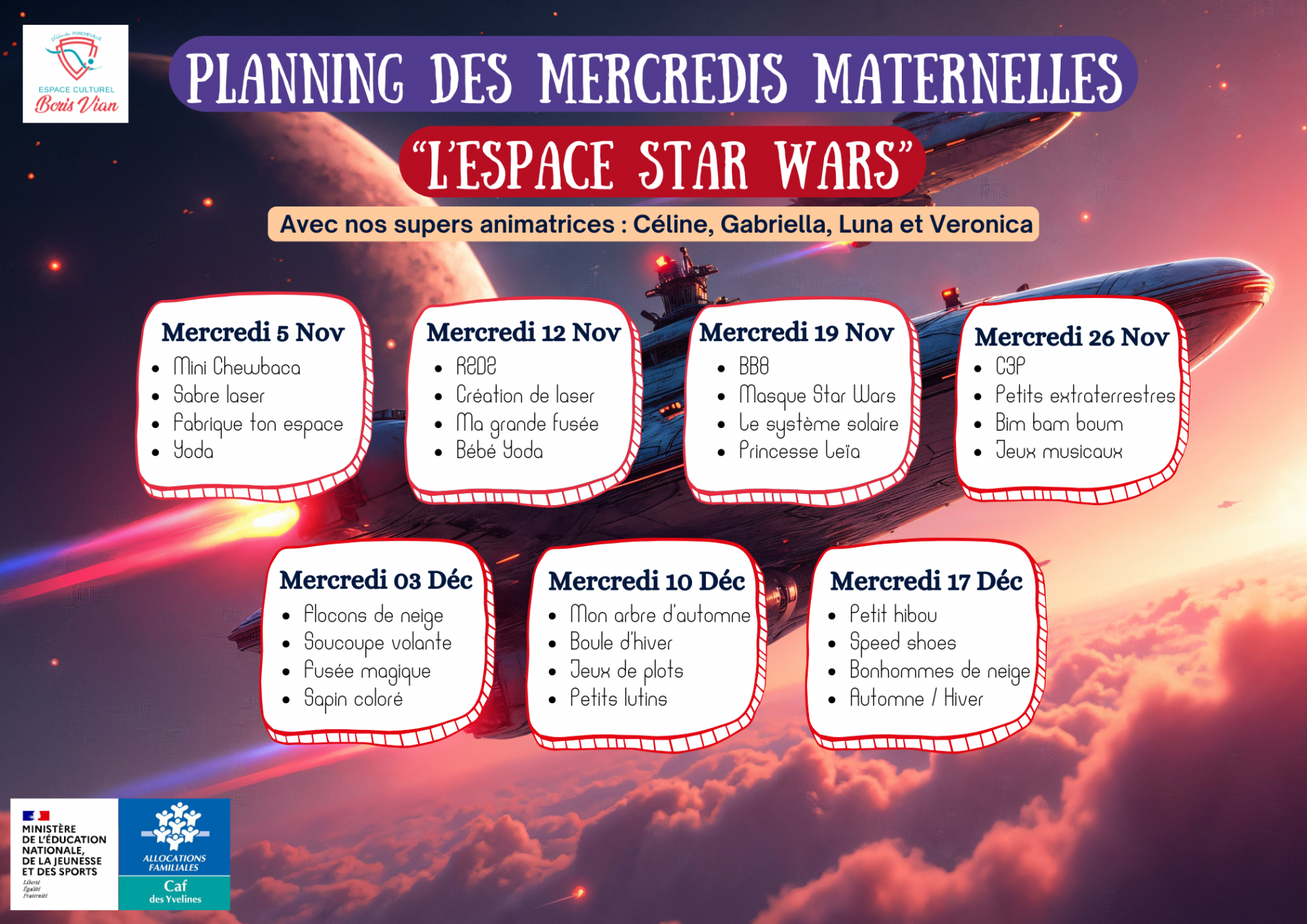 Si vous souhaitez plus d'infos sur le "Plan mercredi", n'hésitez pas à contacter l'espace culturel Boris Vian au 01 30 63 30 80